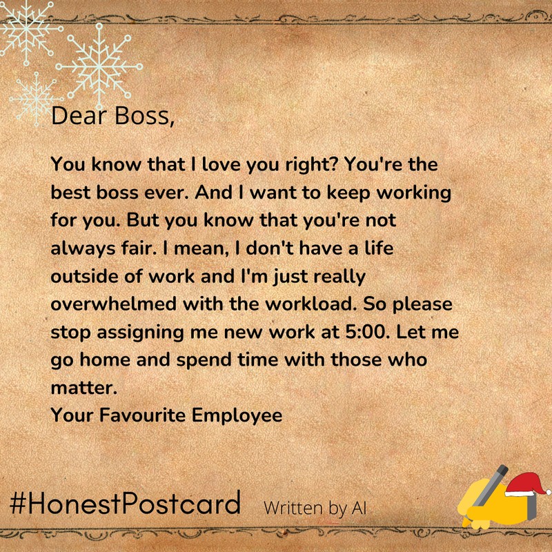 Let’s admit it, most of the greetings that we send across are extra sweet to the point that they might come across as pretentious. Are we right or are we merry-very right? This time, our sincere AI took this into its own virtual hands to churn out some truth bombs. Here are our absolute favourites: